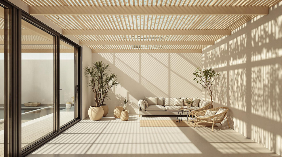 A bioclimatic desert home designed to thrive in arid conditions. Features include adobe walls for thermal regulation, solar shading techniques, and water-saving systems, ensuring comfort and sustainability in a challenging environment.